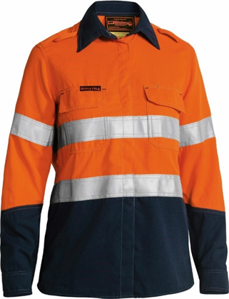 Bisley Flame Resistant Tencate Tecasafe Ladies Shirt Long Sleeve with Vents 2 Hoop Pattern Reflective 238gsm HRC 2 ATPV 9