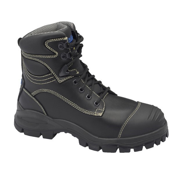 A steel toe cap, penetration resistant midsole and metatarsal protection.