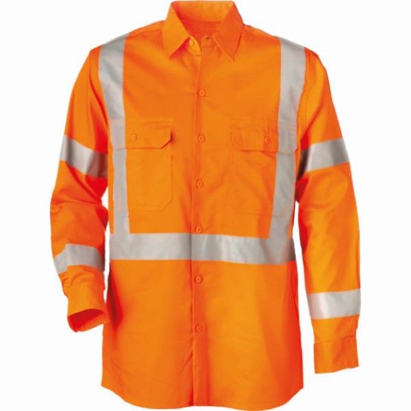 Cotton Drill Shirt Lightweight Horizontal Cooling Vents Long Sleeve Rail X Reflective Tape Orange (CF10009)