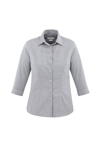 Ladies features bust darts, waist shaping and neatly finished placket