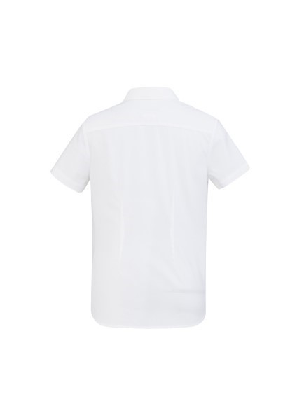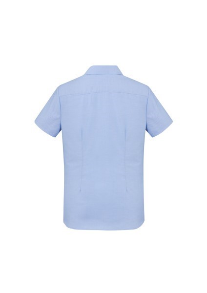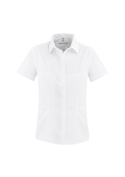 Ladies features bust darts, waist shaping and neatly finished placket