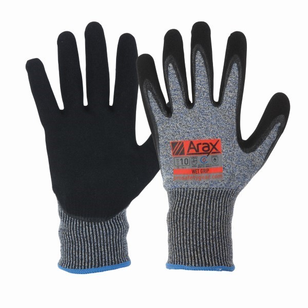Black nitrile sand dip for superior grip in wet or greasy conditions