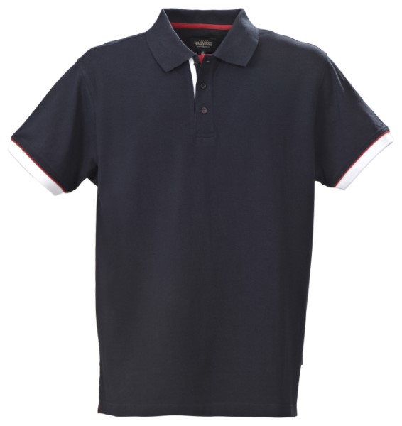 Red features navy, red & white stripe at neck, cuffs & reverse collar