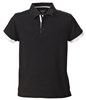 Black features black, white & grey stripe at neck, cuffs & reverse collar