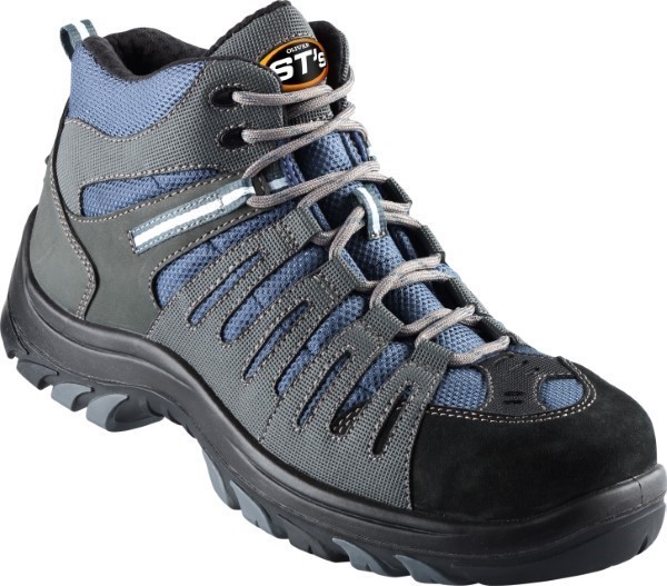 Lightweight water resistant nubuck leather with composite toe cap. Synthetic upper panel.